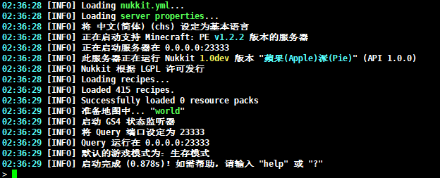 打开你的命令行 输入 java -jar nukkit.jar 运行Nukkit服务端