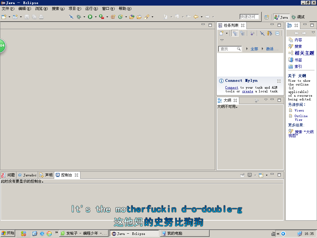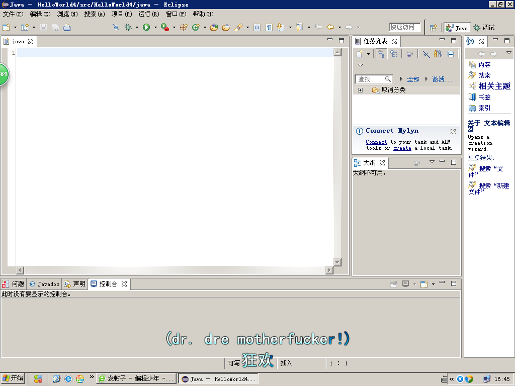 在编辑程序前,我们需要一个趁手的好工具‘ECLIPSE’就是一个不错的JAVA程序编辑器,它能够自动纠正其中的语法错误,并做出正确的提示。首先我们要打开ECLIPSE