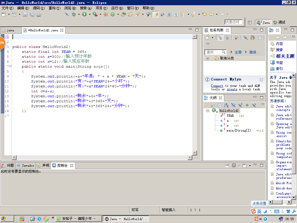 既然简单,我闲得无聊,就编了一个年龄计算器,设int型变量a和x,在a处输入你现在的年龄。在x处输入你预计能活的岁数就能计算你能活的时间和剩余时间(闲得蛋疼对吧)